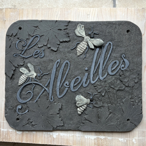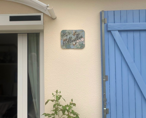 Pour ce travail de commande, je conçois avec vous puis réalise votre plaque de maison, crémaillère de cuisine ou décor de salle de bain…